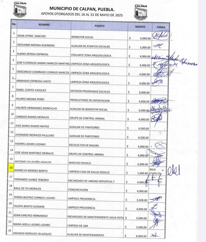 Uno de los privilegios de pertenecer a la familia del alcalde de San Andrés Calpan dentro del ayuntamiento es que se puede percibir un sueldo elevado sin trabajar o como se le dice en el medio político ser un aviador.