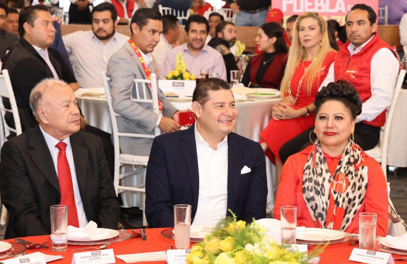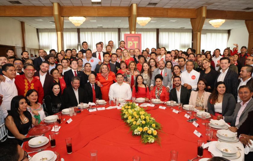 Al evento acompañaron al gobernador electo de Puebla, y al dirigente nacional del PT, Ernesto Villareal Cantú, coordinador político nacional; Nora Merino Escamilla, diputada electa; José Antonio López Ruiz, diputado federal; Esther Martínez Romano, diputada local electa; Angélica Alvarado, diputada local electa; Xel Arianna Hernández García, diputada local electa; José Luis Figueroa Cortes, diputado local electo y Mónica Silva, sindica electa en el municipio de Puebla.