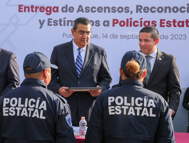 El gobernador Sergio Salomón entregó estímulos y ascensos a policías estatales por acciones relevantes en el cumplimiento de su deber