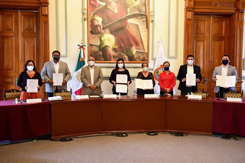 Con la aprobación unánime del plan de trabajo a desarrollarse en 2020 por la integración de lenguaje incluyente al tabulador de los sueldos y salarios del Ayuntamiento de Puebla, la Presidenta Municipal, Claudia Rivera Vivanco, en su calidad de Presidenta del Comité para la Igualdad Laboral y No Discriminación del municipio de Puebla, tomó protesta a las y los integrantes de la nueva estructura orgánica del Comité, el cual está conformado por: María Catalina Pérez Osorio, secretaria para la Igualdad Sustantiva de Género y Secretaria Técnica; José María Sánchez Carmona, contralor Municipal y comisario; Leobardo Rodríguez Juárez, secretario de Administración y representante de la Presidencia; Magaly Herrera López, coordinadora General de Comunicación Social, y Jorge Eduardo Pérez Muñoz, director de Recursos Humanos de la Secretaría de Administración, ambos vocales, así como de María Eugenia Hernández Omaña, en su calidad de representante de las enlaces de las distintas dependencias que también forman parte de este órgano.