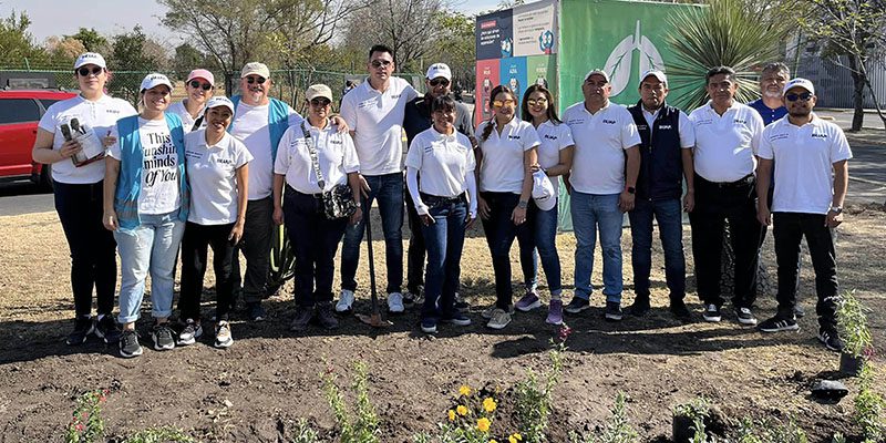 Asimismo, se colocó un árbol central de pino azul mexicano (Pinus maximartinezii Rzedowski), que es una especie endémica, donado por la organización Refauresta de Faurecia México.