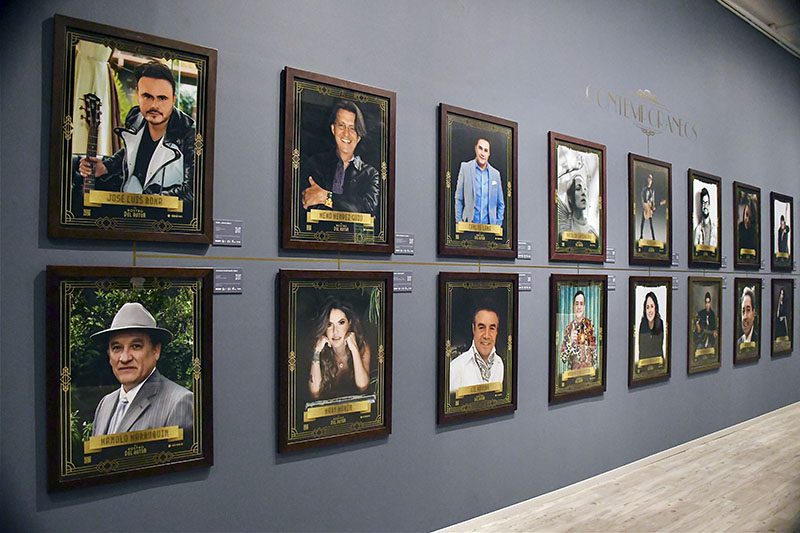 La exposición está integrada por 107 fotografías de distintos personajes, desde los creadores más famosos de bolero, como María Grever, Agustín Lara y Armando Manzanero, hasta los contemporáneos como Juan Gabriel, Alex Lora, Paty Cantú, Leonel García y Aleks Syntek, entre otros. Además, 20 bustos y 20 objetos personales de personajes como Agustín Lara.