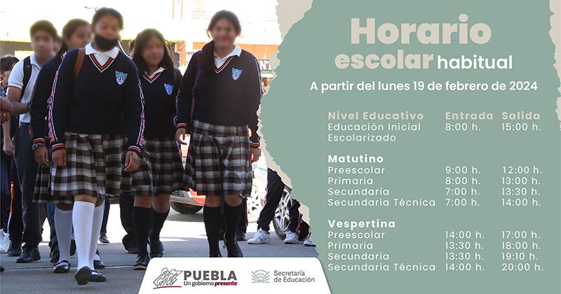 El gobierno presente de Sergio Salomón, a través de la Secretaría de Educación, informa que el viernes 16 de febrero concluirá el “horario de invierno” para un millón 651 mil 107 alumnos de educación básica (inicial, preescolar, primaria y secundaria), de las 13 mil 927 escuelas públicas y privadas de la entidad.