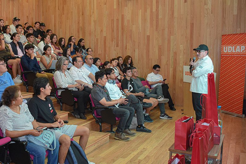 La Universidad de las Américas Puebla (UDLAP) recibió al reconocido chef Aquiles Chávez, quien ofreció una charla a estudiantes de las Licenciaturas en Administración de la Hospitalidad y en Artes Culinarias, reafirmando con su visita la importancia de vincular a los futuros profesionales con líderes de la industria, para así enriquecer su perfil académico y profesional con experiencias reales y transformadoras.
