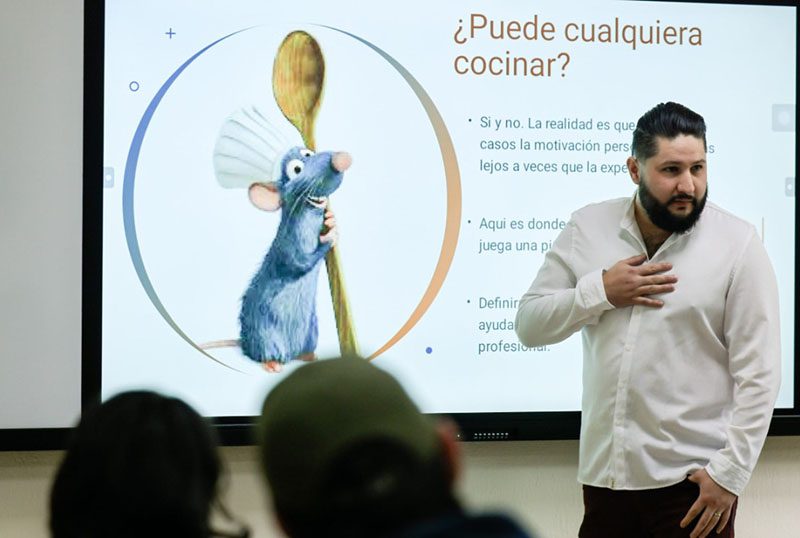 En esta ocasión, estudiantes de nuevas generaciones tuvieron la oportunidad de poder conocer la trayectoria y experiencia durante una master class titulada «Finanzas en hoteles y restaurantes», destacando el manejo eficiente de costos, la optimización de recursos y la rentabilidad en la industria gastronómica. A través de casos prácticos y su propia experiencia en la apertura y remodelación de restaurantes y hoteles de alto nivel, señaló la importancia de la planificación financiera y la toma de decisiones informadas para garantizar el éxito en el sector.