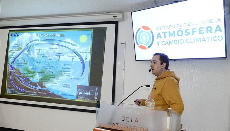 Al participar en el seminario “Aprendiendo cómo los humanos modifican el ciclo hidrológico”, realizado en el auditorio “Julián Adem”, del ICAyCC, ante el director de dicho instituto, Jorge Zavala Hidalgo, el investigador añadió: El ciclo hidrológico es uno de los procesos geofísicos más complejos que existen, el cual no es completamente físico, sino que conlleva hechos biológicos.