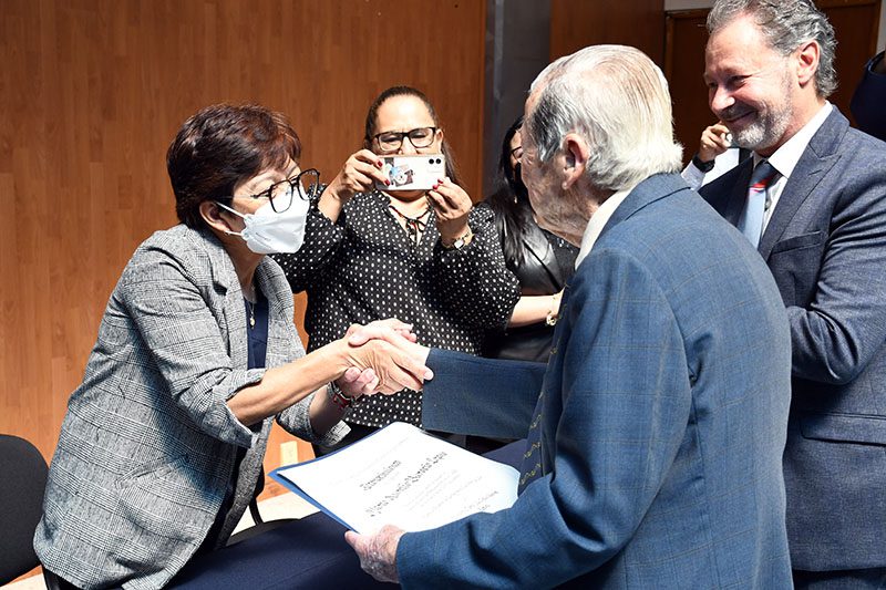 Asimismo, entregó un reconocimiento a Marco Aurelio Barocio Lozano, fundador de la Facultad de Arquitectura, quien ha desarrollado importantes obras públicas en Puebla, como la construcción del Centro Escolar Niños Héroes de Chapultepec y el Seminario Palafoxiano; además, participó en la elaboración del primer Plan General de Mejoramiento y Desarrollo Urbano de la ciudad capital.