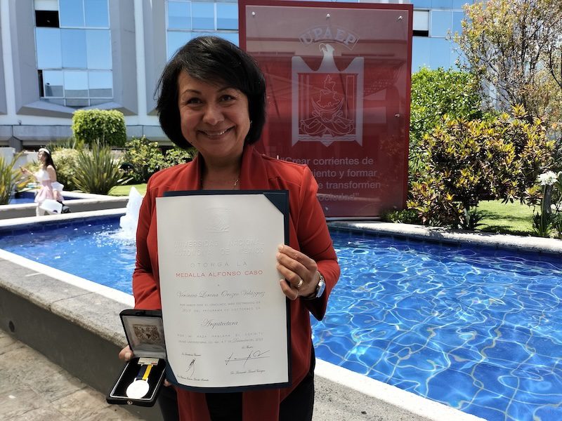 La Universidad Nacional Autónoma de México (UNAM) otorgó la Medalla Alfonso Caso a la Dra. Verónica Lorena Orozco Velázquez, profesora investigadora en la Facultad de Arquitectura de la UPAEP y actual Secretaria Académica del Decanato de Ciencias Creativas, por haberse distinguido como la mejor egresada del programa de Doctorado en Arquitectura en el año 2019.