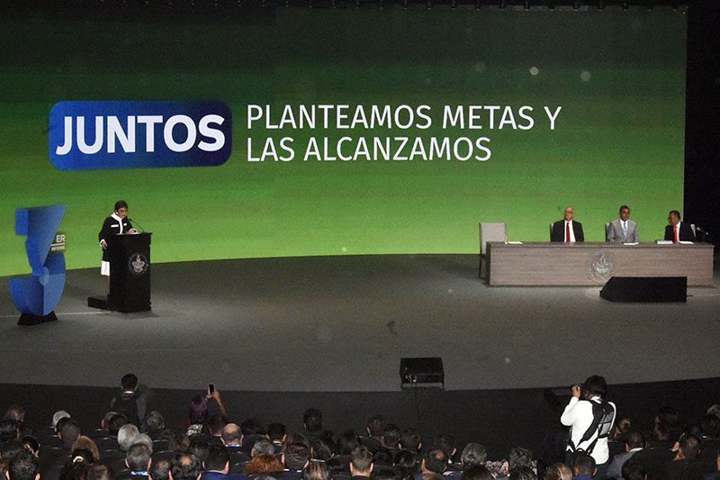 Al concluir su informe, la rectora enfatizó el sentido de comunidad y trabajo conjunto al asegurar que: “Los logros son de todos, juntos caminamos con pasos firmes hacia un mismo objetivo, por eso cada universitario asume con responsabilidad y compromiso cada una de sus responsabilidades. Todos somos un gran equipo, juntos nos comprometemos con la honestidad y rendición de cuentas. No tenemos ninguna observación por parte de las auditorías de la federación y del estado, por eso logramos construir la primera parte de CU2. Juntos afrontamos el futuro, por ello cada acción tiene como objetivo el beneficio de los universitarios y de la sociedad”.