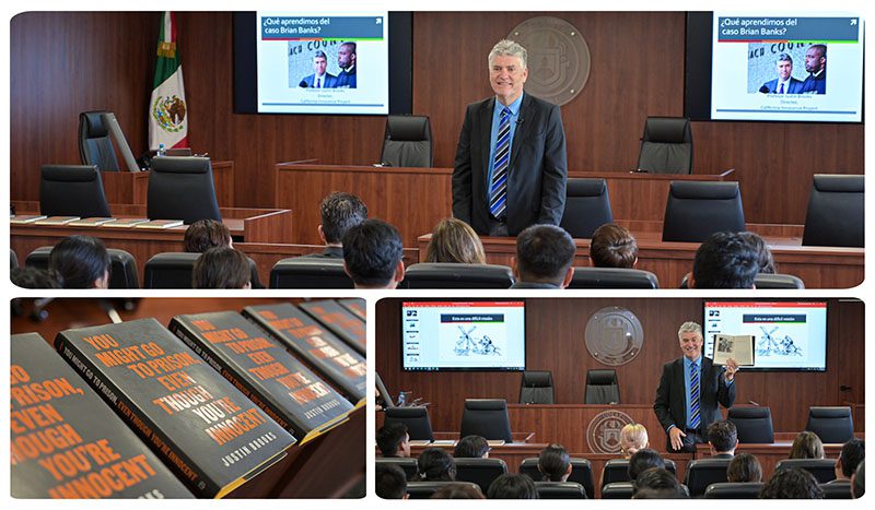 Durante su visita a la UDLAP, Justin Brooks realizó una serie de actividades que permitió a los estudiantes y al público en general tener un panorama real de los retos que enfrentan los abogados en la búsqueda de la justicia. Además de la conferencia en la que habló de su libro “You Might Go to Prison Even Though You’re Innocent», recorrió el campus, reconoció la infraestructura educativa con la que cuenta la UDLAP para el proceso de enseñanza-aprendizaje y realizó un taller sobre las recomendaciones para preparar y ganar un juicio oral, herramientas argumentativas consideradas como clave para la práctica legal.
