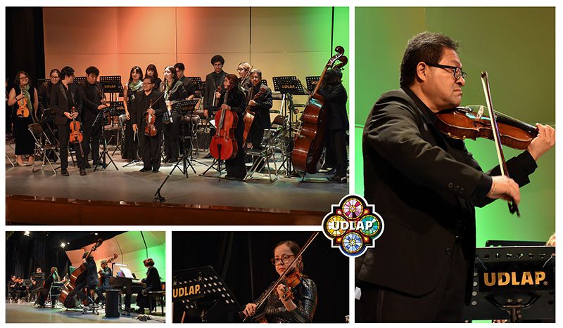 Inmediatamente después se presentó la Orquesta Symphonia UDLAP, quienes al lado del Mtro. Chan Sabido, reconocido internacionalmente por su trayectoria en diversas orquestas y festivales de Europa, prepararon una semana antes este concierto, como parte de la formación de calidad que reciben los estudiantes de la UDLAP.