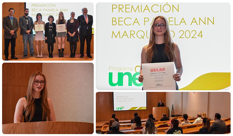 En un evento que refuerza el compromiso de la Universidad de las Américas Puebla (UDLAP) con el desarrollo profesional y académico de sus estudiantes, se entregó la “Beca Pamela Ann Marquard” 2024 a Valeria Cuevas Cianca, estudiante de la Licenciatura en Artes Plásticas. Este significativo reconocimiento es resultado de la alianza estratégica entre la UDLAP y la William A. Marquard Family Foundation, cuyo objetivo común es impulsar el talento artístico en México.