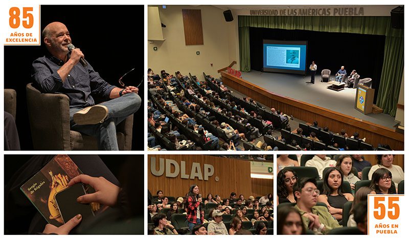 Este encuentro semestral con la lectura y la reflexión se llevó a cabo en el Auditorio Guillermo y Sofía Jenkins de la Universidad de las Américas Puebla y reunió a un centenar de estudiantes de Primera Lengua, que, como cada periodo, gracias a la suma de esfuerzos, tienen la oportunidad de conocer al autor del libro acogido como “el libro del semestre”. “Para nosotros en la UDLAP la formación de mentes críticas y pensantes es una misión en la enseñanza y sin duda, la lectura es la mejor herramienta para lograr ese objetivo”, explicó la Dra. Miriam Yvonn Márquez Barragán, coordinadora del área de Primera Lengua y del Centro para el Aprendizaje de la Escritura Académica y Pensamiento Crítico (CAEAPC) de la UDLAP.