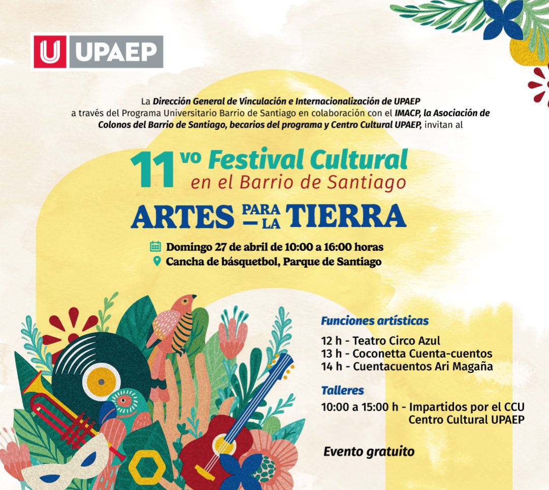 Este domingo 27 de abril se realizará la 11va edición del Festival Cultural en el Barrio de Santiago “Artes para la Tierra”, teniendo como eje temático el cuidado del medio ambiente, conjuntando para ello una serie de actividades gratuitas para niños y adultos que tienen el propósito de formar en valores, tomar conciencia y generar una convivencia familiar e intergeneracional.