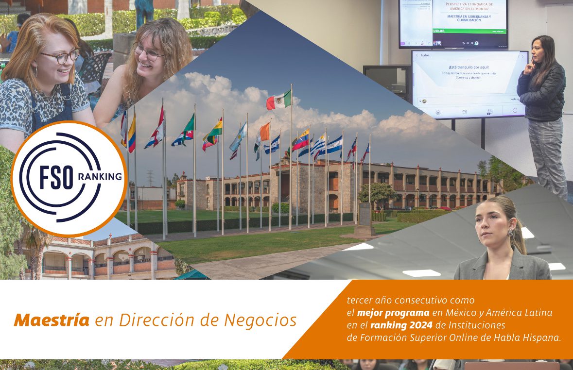 La maestría en Dirección de Negocios, en modalidad mixta, de la Universidad de las Américas Puebla (UDLAP), se posicionó por tercer año consecutivo como el mejor programa en México y América Latina en el ranking 2024 de Instituciones de Formación Superior Online de Habla Hispana (FSO).