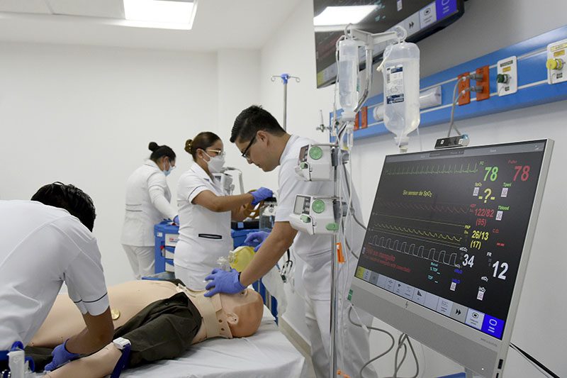 Actualmente se desarrollan jornadas de capacitación a los académicos de diferentes áreas para concretar la transición de su cátedra a un caso clínico expuesto con simuladores. Al respecto, el doctor José de Jesús Andrade Macías, docente de la Facultad de Enfermería, refiere que lo primero es determinar objetivos educativos y después dar paso a la simulación clínica. Hasta el momento han participado 80 profesores, quienes tienen la encomienda de replicar el conocimiento sobre el manejo de los simuladores.