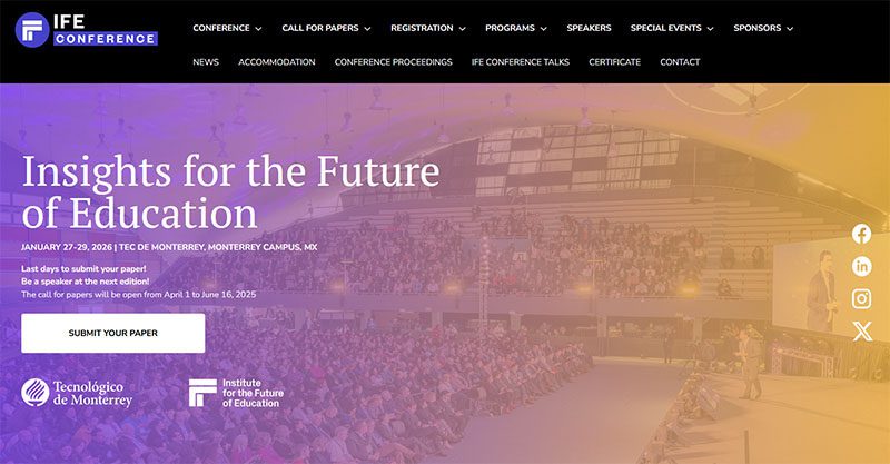 Frente a este panorama, la Conferencia IFE, organizada por el Instituto para el Futuro de la Educación del Tecnológico de Monterrey, busca ser un espacio de colaboración interdisciplinaria donde se compartan ideas, experiencias y soluciones para los desafíos que enfrenta el aprendizaje en el siglo XXI. Esta cumbre anual, que desde su inicio en 2006 ha reunido a más de 34.000 participantes de más de 40 países, promueve el intercambio de propuestas para transformar la educación.