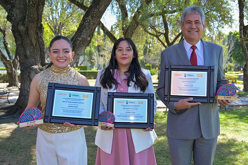 Brenda Elizabeth Aguirre Gutiérrez, Sofía Angélica García Vargas y Guillermo Díaz Martínez, fueron los ganadores del Premio “Innovar para el Futuro”, una iniciativa de la Universidad de las Américas Puebla (UDLAP) y la empresa química BASF, que se realiza con el objetivo de promover la creatividad frente a los desafíos medioambientales y de sustentabilidad que atraviesa el mundo actual.
