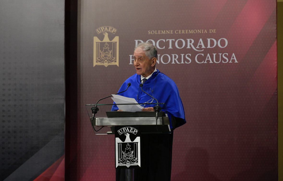 UPAEP distinguió con el mayor de sus grados al Dr. Rocco Buttiglione, reconocido politólogo y jurista italiano. Al recibir el Doctorado Honoris Causa, el exministro del gobierno de Italia presentó la tesis titulada “La presencia de Cristo en la vida política. ¿Cómo vivir el misterio en la cotidianidad de la política?”.