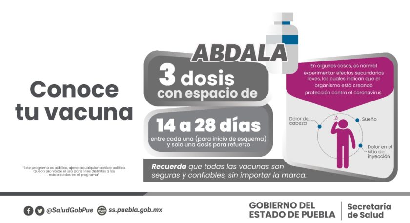 Los biológicos disponibles son “Abdala” y “Sputnik”, para los siguientes grupos de edad: mujeres embarazadas y en puerperio, mayores de 18 años en adelante, así como personas de 60 años y personal médico, quienes al menos tengan 12 meses después de haber recibido su última dosis.