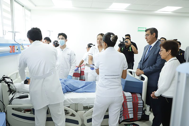 Ante la rectora Lilia Cedillo Ramírez, el mandatario indicó que el Centro de Simulación permitirá que las y los futuros doctores enfrenten escenarios clínicos reales y simular situaciones complejas, desde procedimientos quirúrgicos hasta emergencias médicas.