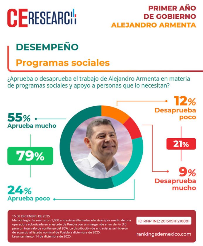 Los programas sociales son una fuente importante de elogio entre los poblanos, con ocho de cada diez encuestados expresando su aprobación de los apoyos implementados.