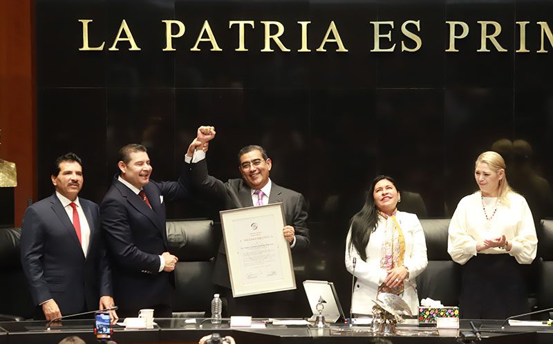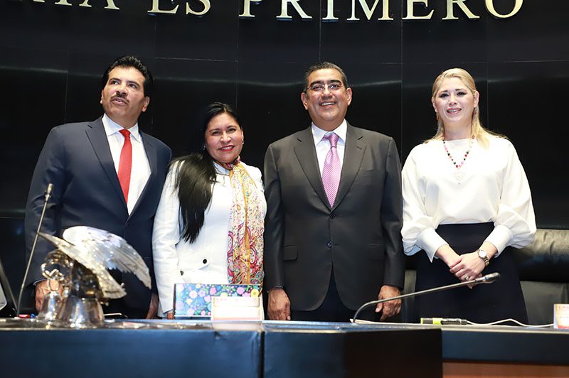 Por último, el gobernador Sergio Salomón agradeció al Senado de la República por poner en alto el nombre de Puebla con este acto solemne.