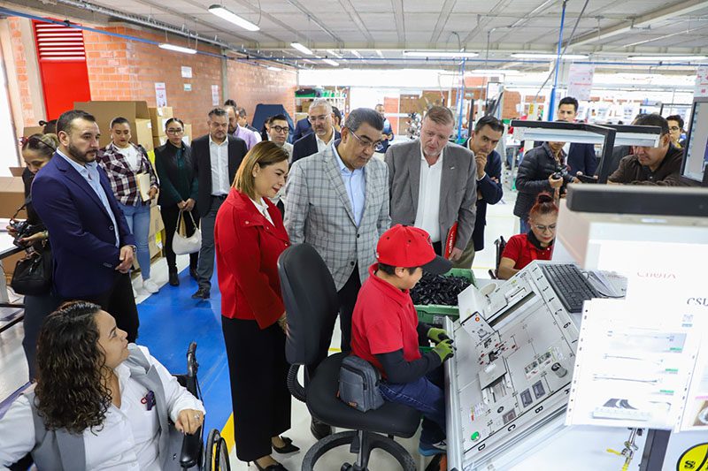 En compañía de la presidenta honoraria del Patronato del SEDIF, Gaby Bonilla, el mandatario visitó a trabajadores de la empresa social CINIA México