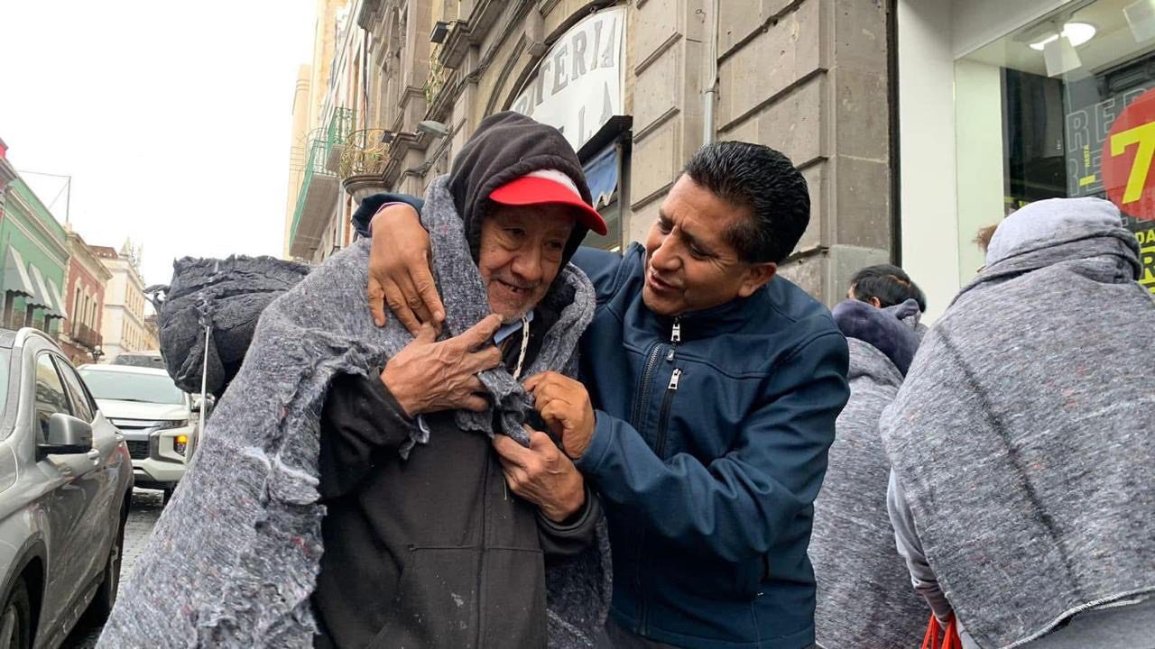 El gobierno del Estado de Puebla a través del Sistema Estatal del Desarrollo Integral de la Familia (SEDIF), entregó impermeables, cobertores y café caliente a los abuelitos que acudieron este día al banco Bienestar ubicado en la calle Reforma colonia Centro y sufrieron las inclemencias del frente frío número 24 que trajo lluvias y aires moderados.