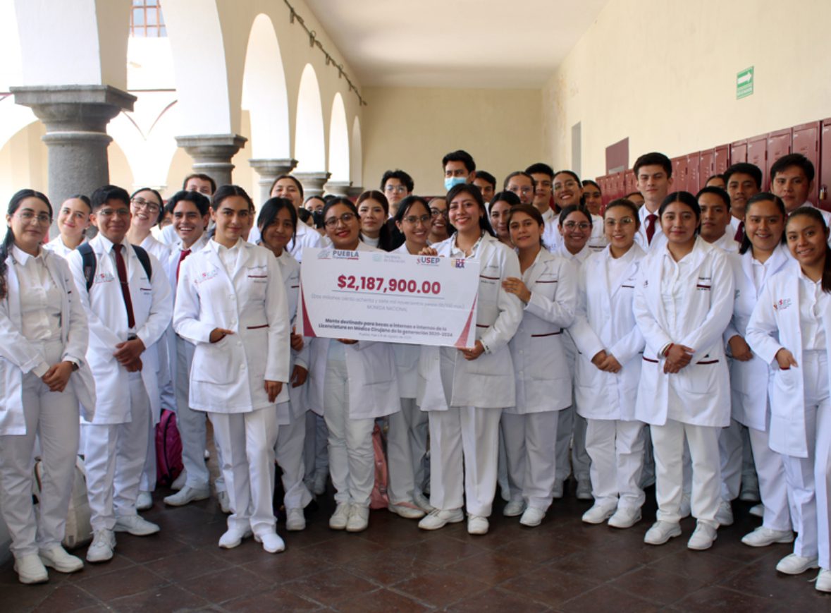 Como parte del compromiso del gobierno presente de Sergio Salomón para mejorar las condiciones de formación profesional de estudiantes de la Licenciatura en Médico Cirujano, a través de la Universidad de la Salud del Estado de Puebla (USEP), entregó becas a 190 jóvenes que realizan su internado médico de pregrado en diversos nosocomios del país.