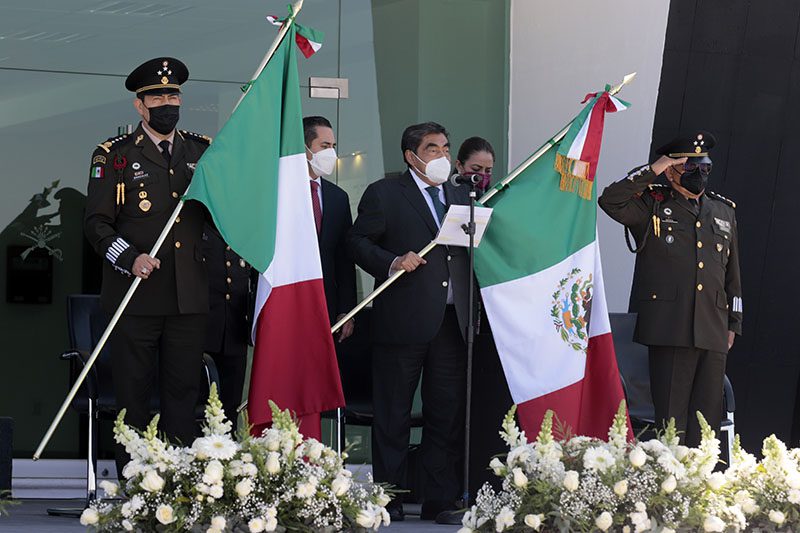 Con el toque “Tres de Diana” y toma de protesta a 50 escoltas de planteles educativos, el gobernador Miguel Barbosa Huerta presidió la Ceremonia Conmemorativa al Día de la Bandera, acto en el que expuso que este Símbolo Patrio debe inspirar a las y los mexicanos para acabar con la corrupción, delincuencia, pobreza y desigualdad, así como con los privilegios.