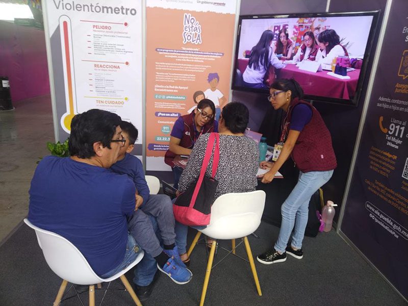 Gracias al compromiso del gobierno presente de Sergio Salomón, de fortalecer la cercanía con las y los poblanos durante la temporada de la Feria de Puebla 2023; la Secretaría de Igualdad Sustantiva (SIS) brinda proximidad e información mediante su módulo de atención, el cual proporciona asesorías psicológica y jurídica a usuarias y usuarios, además de la difusión de material informativo como el violentómetro y gacetas impresas, referentes a derechos de la mujer y nuevas masculinidades, lo que ha favorecido a un total de mil 573 personas (al momento).
