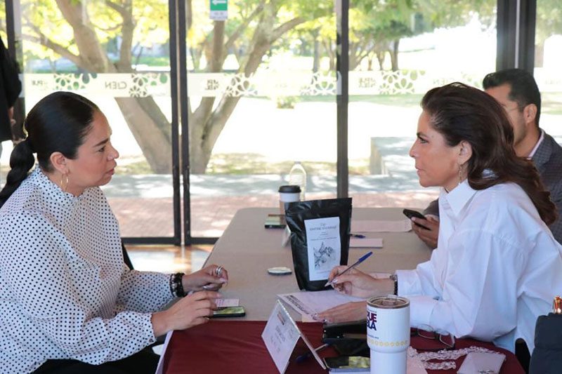 La secretaria de Economía, atendió a Zaira León, propietaria de “Café Entre Sierras” y le explicó las ventajas de que el grupo de mujeres que representa, en municipios como Xicotepec de Juárez, Pahuatlán o Zihuateutla, aprovechen la capacitación que la dependencia otorga a los emprendedores para que aprendan técnicas de mercadotecnia, liderazgo y ventas que impulsen su negocio.