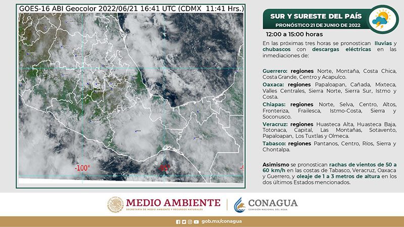 Este fenómeno que interactuará con la onda tropical número 6, y el canal de baja presión en el occidente y suroeste del Golfo de México, ocasionará un temporal húmedo con lluvias de muy fuertes a puntuales intensas en las sierras Norte, Nororiental y Negra, además de chubascos de moderados a intensos en el resto del estado. Asimismo, habrá rachas de vientos de hasta de 55 km/h en Valles Centrales, Angelópolis, Atlixco-Matamoros y Tehuacán-Sierra Negra.