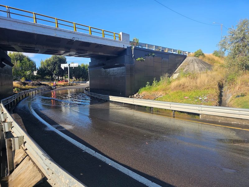 El Gobierno del Estado, a través de la Secretaría de Infraestructura, informa que continúan los trabajos de rehabilitación del drenaje pluvial en el retorno del Periférico Ecológico con sentido a Puebla, a la altura del Bulevar Forjadores, zona que resultó afectada por un accidente vehicular.