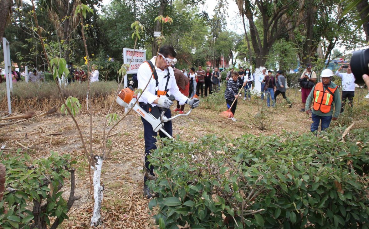 El equipo de trabajo incluyó desbrozadoras, palas, brochas, carretillas, cascos, camiones de volteo y personal especializado, incluyendo elementos de bomberos e infraestructura.