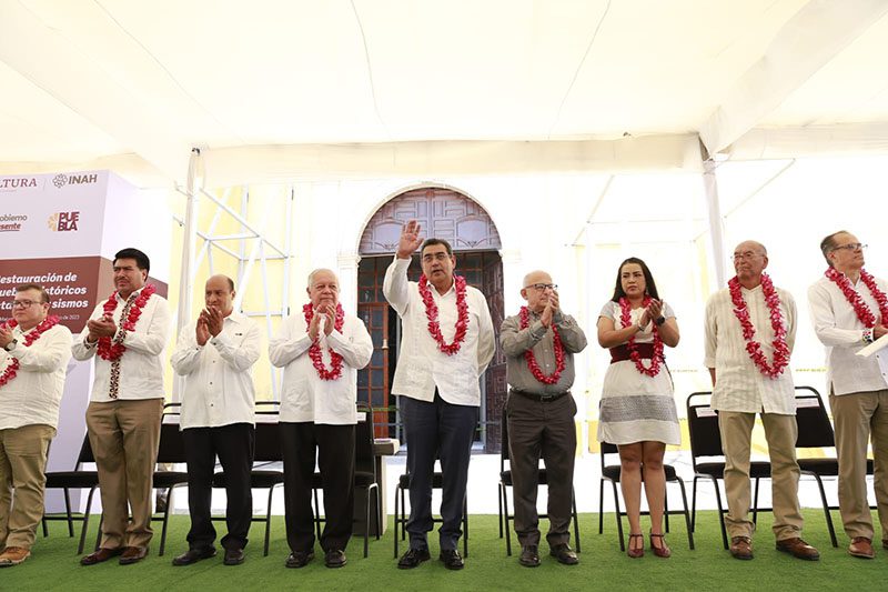 Además del director general del INAH, Diego Prieto Hernández, en el evento estuvieron María del Carmen Castro Barrera, coordinadora nacional de Conservación del Patrimonio Nacional; Manuel Villarruel Vázquez, director del Centro INAH en Puebla; el arzobispo de Puebla, Víctor Sánchez Espinosa, así como secretarias y secretarios del gabinete estatal.