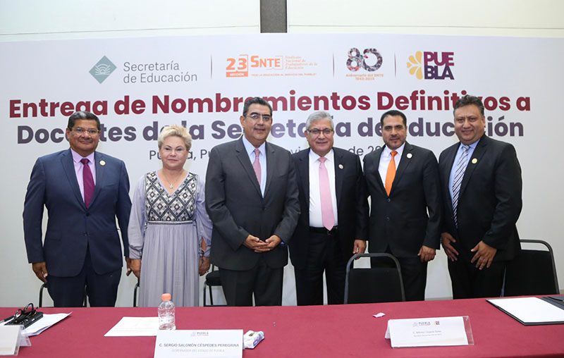Con la entrega de mil 484 nombramientos definitivos, el gobierno de Puebla reconoce a las y los docentes y brinda certeza laboral a este sector para que participen en los distintos procesos de desarrollo profesional, manifestó el gobernador Sergio Salomón al presidir el otorgamiento de dichos documentos en el Centro Expositor.