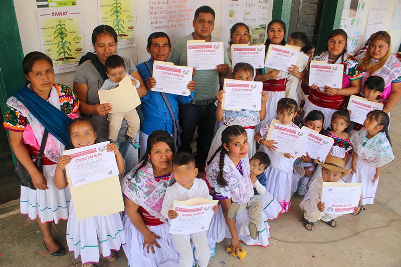 El apoyo otorgado a estos tres grupos llamados “Xmasekg Laktsintsa Kaman Kuxinin – Pequeños nidos, niños de maíces”; “Momachtianime – Aprendices” y “Mexihkah Tlahtoli – La lengua de los Mexicas”, benefició a 102 personas indígenas, de las cuales 34 fueron infantes, 68 madres y padres de familia, así como tres promotoras y tres personas adultas mayores conocidas como “sabios o sabias de la palabra”.