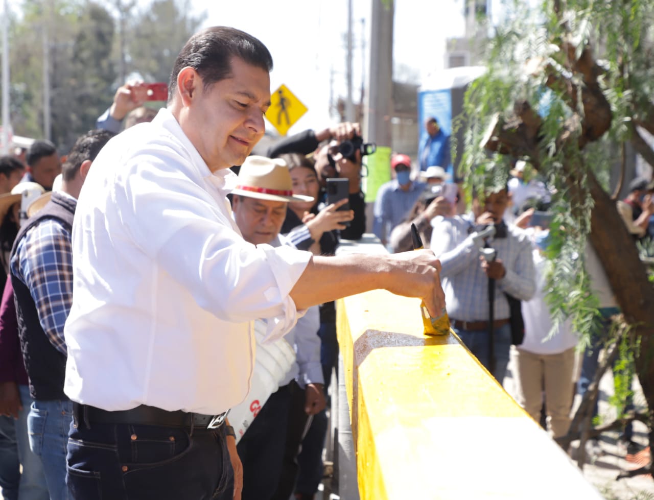 Acompañado por el edil de Tlacotepec de Benito Juárez, Martín Camargo de la Peña e integrantes del gabinete estatal, el gobernador Alejandro Armenta, previamente inauguró el entronque de la Carretera Tlacotepec de Benito Juárez a San Marcos Tlacoyalco, que beneficiará a más de 16 mil habitantes de la zona.