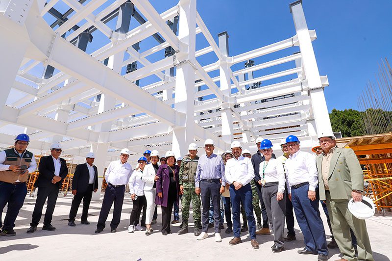 El gobernador Sergio Salomón y el director general del IMSS, Zoé Robledo Aburto supervisaron el avance de la construcción del Hospital de San Alejandro