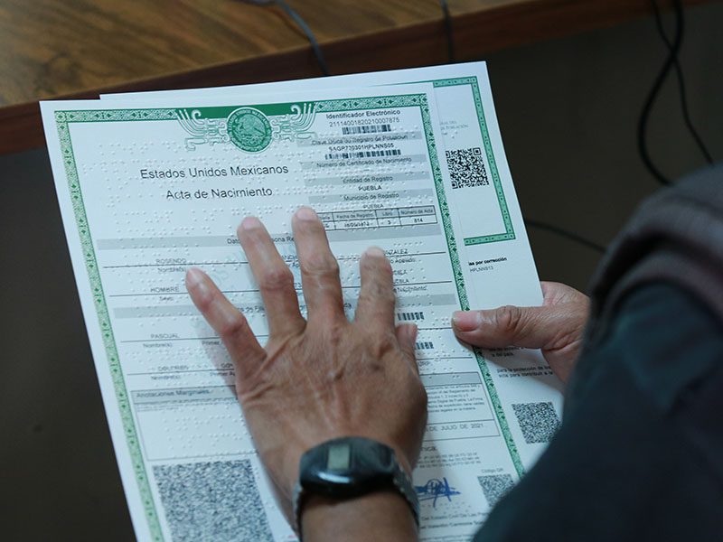 A través de la expedición gratuita de actas de nacimiento y la Clave Única de Registro de Población (CURP) en Sistema Braille, los módulos 1 y 2 del Registro Civil del Sistema para el Desarrollo Integral de la Familia del Estado de Puebla (SEDIF), atienden las necesidades de las personas con discapacidad visual y fomentan la inclusión de este sector de la población.