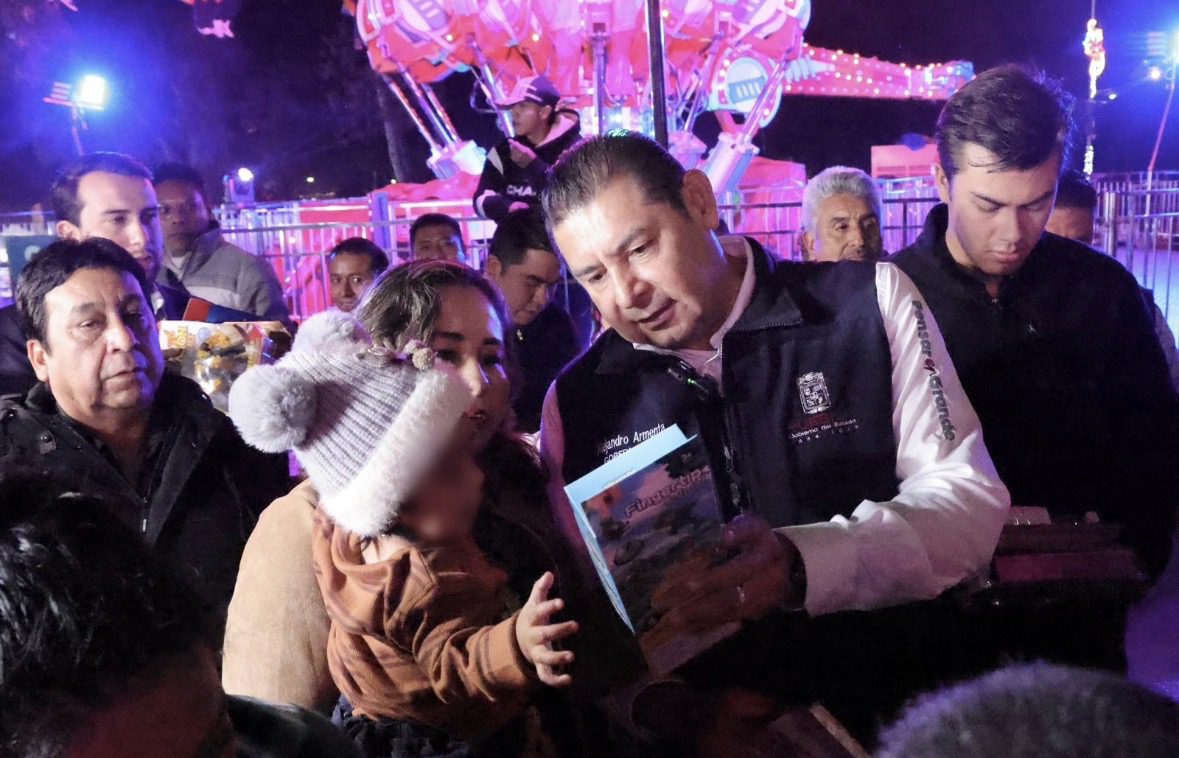 En un ambiente de alegría y paz, el gobernador de Puebla, Alejandro Armenta, convivió con miles de familias y entregó 5 mil juguetes a pequeñas y pequeños que compartieron sonrisas llenas de ilusión, durante su recorrido por el Festival Navideño “Por Amor a Puebla”, que se realiza en el Centro Expositor.