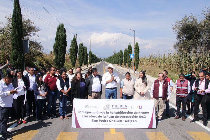 Para garantizar la seguridad y movilidad de la población ante alguna contingencia por el volcán Popocatépetl, el gobernador Sergio Salomón entregó las rehabilitaciones de las rutas de evacuación número 2 en este municipio y número 1 en Calpan.