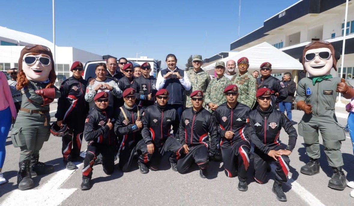 La jornada incluyó exhibiciones del equipo de alto rendimiento “Guerreros Águila”, integrado por 13 paracaidistas de caída libre —dos mujeres y 11 hombres—, así como módulos de servicios, actividades recreativas y espacios de convivencia familiar.