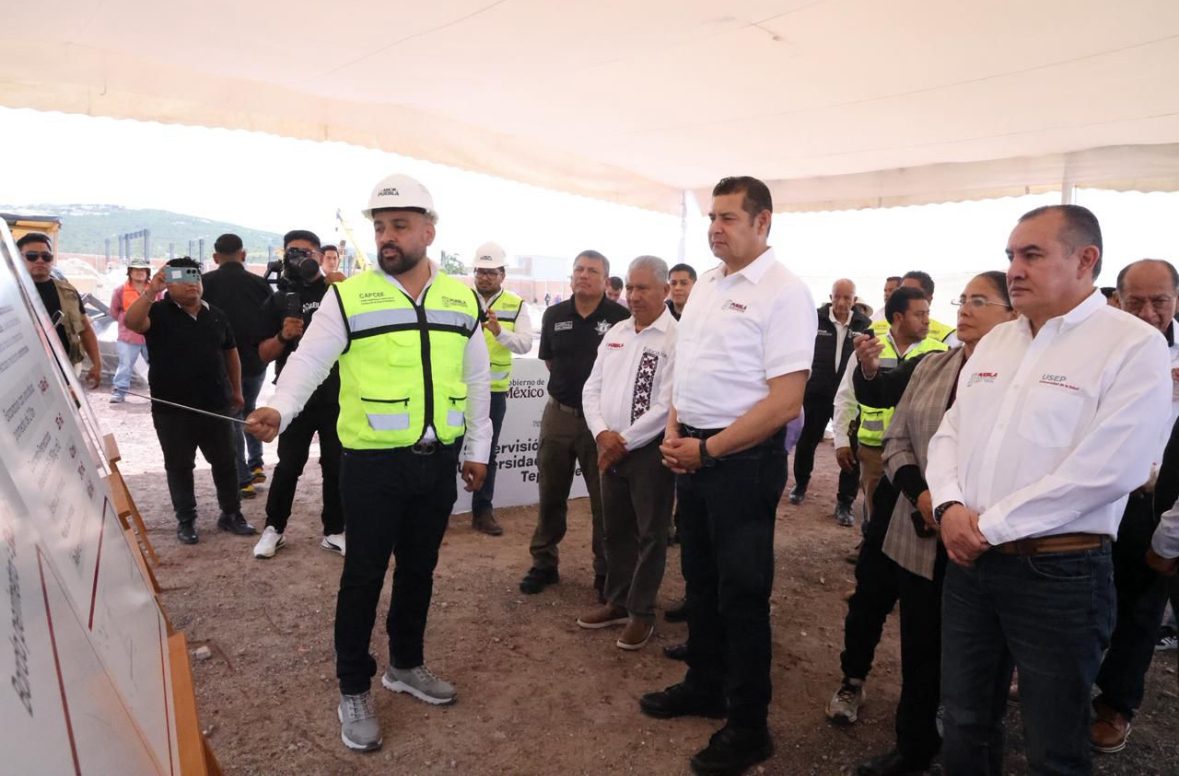 -El gobernador de Puebla, Alejandro Armenta, supervisó la construcción de la Universidad de la Salud en el municipio de Tepexi de Rodríguez.