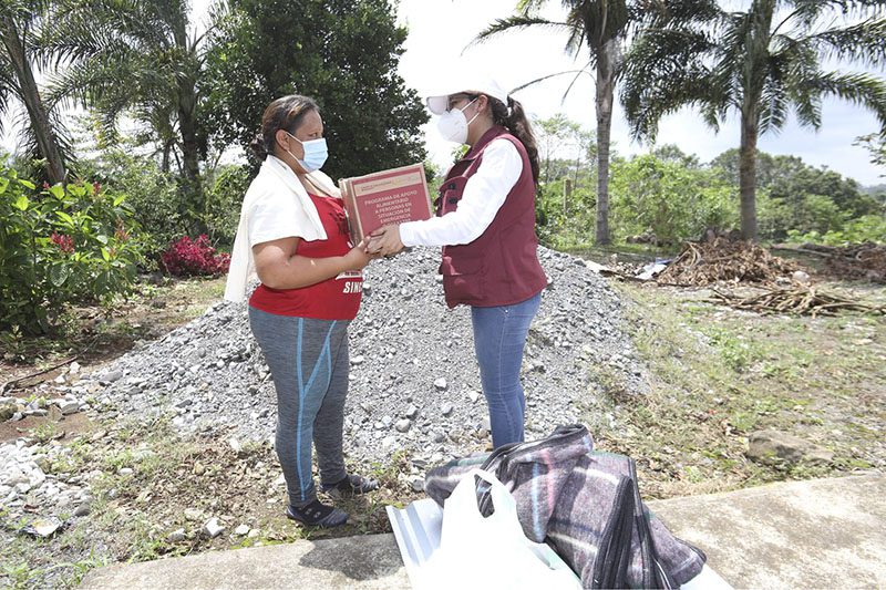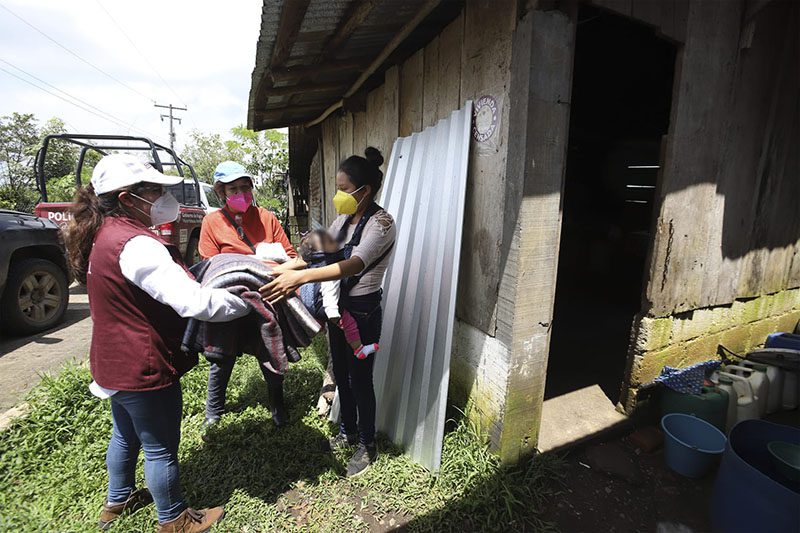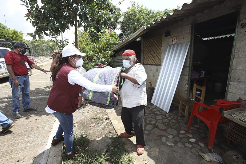En las localidades de Arroyo Hondo, Cuamaxalco, El Encinal, Rancho Nuevo, Tecuantla, Patla, San Pedro, Buenos Aires y la cabecera municipal, las brigadas del organismo entregaron láminas para la reconstrucción de viviendas, paquetes alimentarios, agua embotellada y productos de limpieza, cuyas acciones son supervisadas por personal de la Secretaría de la Función Pública para garantizar la legalidad y transparencia.