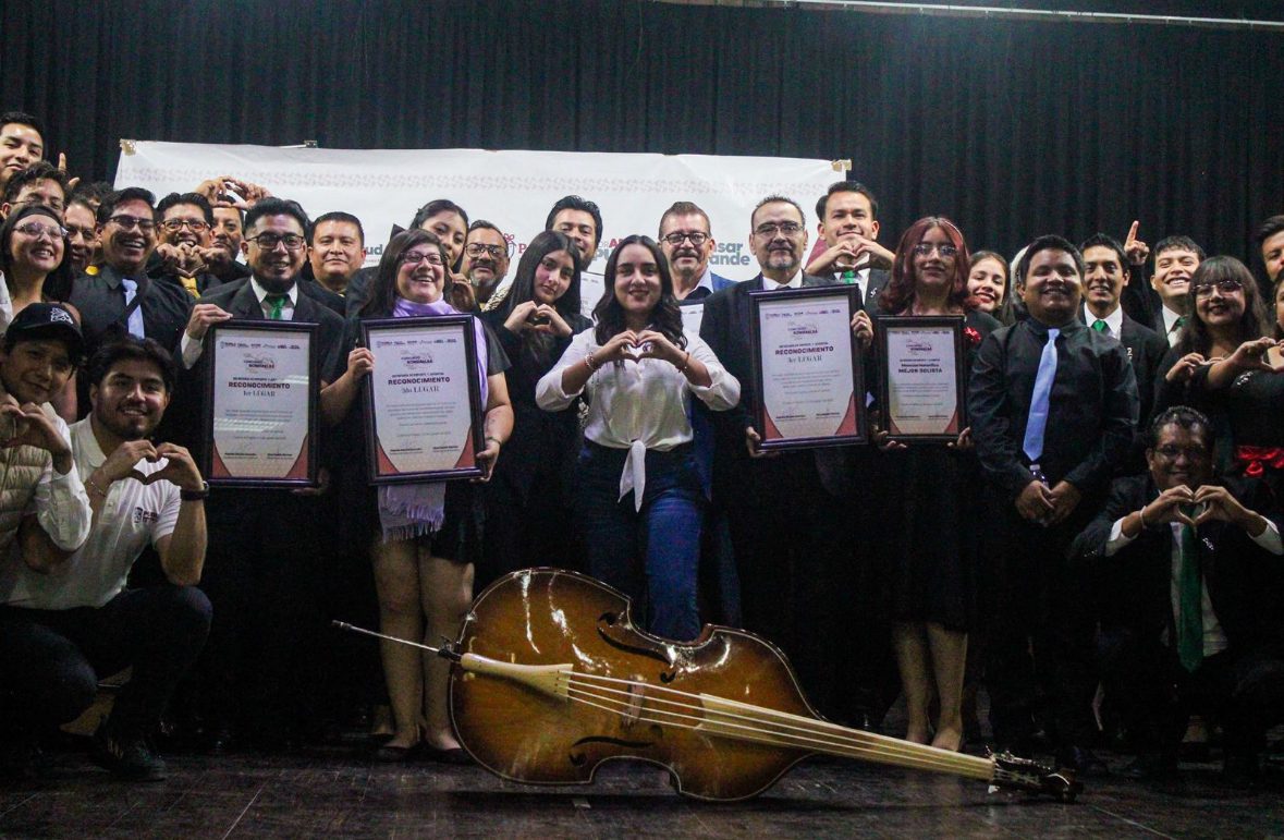 Con el objetivo de fortalecer el tejido social y brindar a las juventudes espacios para su desarrollo, el Gobierno del Estado, encabezado por Alejandro Armenta, a través de la Secretaría de Deporte y Juventud, dirigida por Gaby ‘La Bonita’ Sánchez, realizó el concurso de rondallas “Voces del Corazón” en el auditorio del Benemérito Instituto Normal del Estado (BINE).