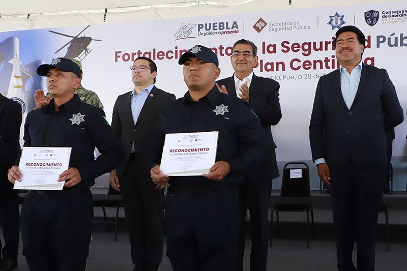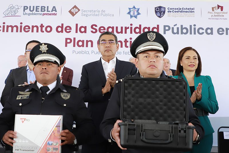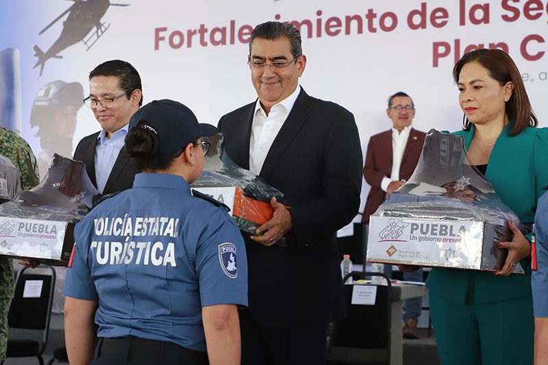 En coordinación con la federación y los 217 ayuntamientos, Puebla se consolida como un estado seguro, destacó el gobernador Sergio Salomón al presidir la entrega de dos vehículos tácticos (Rihno), patrullas, equipo táctico y uniformes, así como reconocimientos a 220 nuevos policías estatales, mismos que concluyeron su formación en las academias del estado de Seguridad Pública y aprobaron las pruebas de confianza.