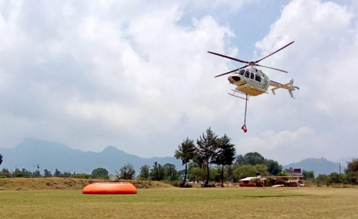 Arribó el helicóptero para colaborar en las tareas. No hay daños a personas, ni viviendas.